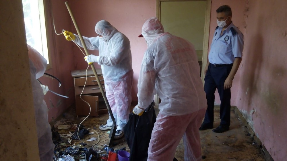 Bayraklı Çiçek Mahallesi'nde, kötü koku yaydığı gerekçesiyle çevre sakinleri tarafından ilgili mercilere şikayet edilen 1637/17 Sokak'taki 3 katlı binanın zemin katı, Bayraklı Belediyesi Temizlik İşleri Müdürlüğünce temizlenerek dezenfekte edildi. Binanın kiracısı tarafından çöp eve dönüştürülen yapıda ev sahibi kiracıyla olan ilişkisini noktalandırarak belediye ekiplerinden destek istedi. Bayraklı Belediyesi Temizlik İşleri Müdürlüğü, 4 kişilik ekiple evin her noktasını temizledi, ilaçlayarak dezenfekte etti. Evden çekyat, koltuk, pet şişe atıkları, yemek artıkları ve çöplerden toplandığı tahmin edilen kullanılamaz halde birçok eşya çıktı. 30 metrekarelik dairede gün boyu çalışmalarını sürdüren ekipler, 1.5 tonluk atık toplayarak çıkan çöpleri Harmandalı düzenli atık deposuna transfer etti. Mahalle sakinleri, uzun süredir kötü kokudan dolayı büyük sorun yaşadıklarını, evin boşaltılmasıyla rahat bir nefes aldıklarını belirtti.