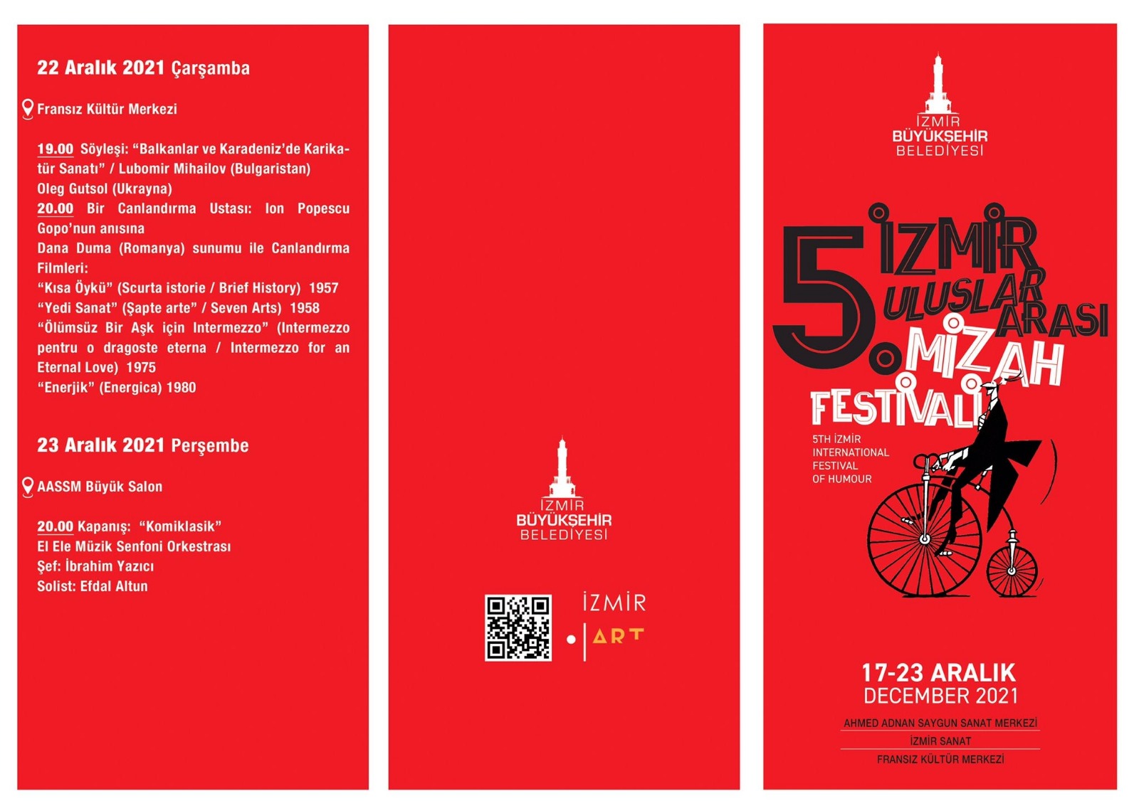 İzmir Büyükşehir Belediye Başkanı Tunç Soyer’in İzmir’i kültür sanat kenti haline getirme vizyonu doğrultusunda İzmir Uluslararası Mizah Festivali 17-23 Aralık tarihleri arasında beşinci kez düzenleniyor. “Mizah Dünyasının Popüler Kahramanları” temasıyla yapılan festival, Vecdi Sayar’ın yönetmenliğinde müzikten sinemaya tüm sanat dallarında etkinlikleri kapsıyor.