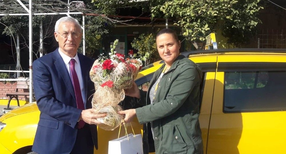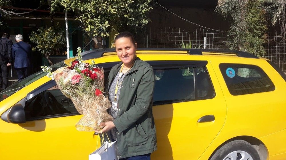 İzmir Şoförler ve Otomobilciler Esnaf Odası Başkanı Celil Anık, İzmir'in tek kadın taksicisi Sevim Kaykaç'ı 8 Mart Dünya Kadınlar Gününde yalnız bırakmadı. Anık, Kaykaç'a çiçek verdi, "Sizinle gurur duyuyoruz" diye konuştu.