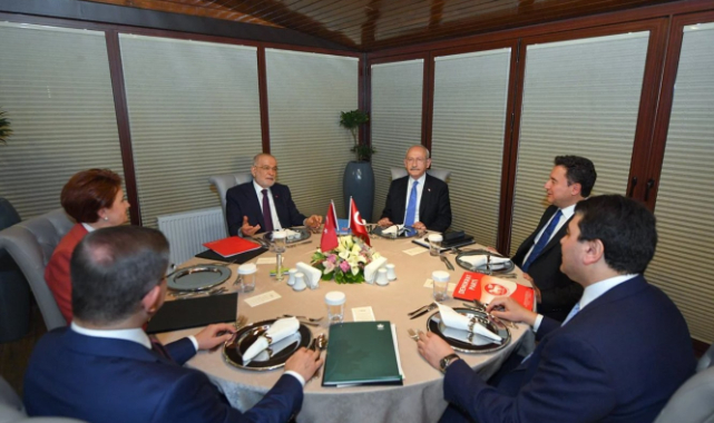 ORTAK AÇIKLAMA YAPILDI5 saat 15 dakika süren tarihi buluşma sonrası genel başkanlar, ortak açıklama yaptı. Açıklamada şu ifadelere yer verildi:* Bugün, Türkiye için tarihi bir gündür. Birbirinden farklı altı siyasi parti olarak, bizler, Türkiye'nin yıllardır görmeyi umut ettiği tarihi bir çalışma için bir araya geldik.* Güçlendirilmiş Parlamenter Sistem Mutabakat Metni'ni hazırlayan partiler olarak bizler, etkin ve katılımcı bir yasama, şeffaf ve hesap verebilir bir yönetim, tarafsız ve bağımsız bir yargı ile kuvvetler ayrılığının tesis edildiği güçlü, özgürlükçü, demokratik, adil bir sistem inşa etme kararlığı içindeyiz.* Ülkemiz, Cumhuriyet tarihinin en derin siyasi ve ekonomik krizlerinden birini yaşamaktadır. Toplumsal, siyasal ve ekonomik sorunlar her geçen gün artarak etkisini ağır bir biçimde göstermektedir. Bu krizin en önemli sebebi kuşkusuz, “Cumhurbaşkanlığı Hükümet Sistemi” adı altında uygulanan keyfi ve kural tanımaz yönetimdir.“KUTUPLAŞMAYI DEĞİL, İSTİŞARE VE UZLAŞMAYI ESAS ALDIK”* Altı siyasi parti olarak hepimizin ortak sorumluluğu, uzlaşarak ve birlik içinde bu krizi aşmak, derin sorunlarımızı demokratik siyasetin alanını genişleterek, çoğulculuk temelinde çözebilmektir.* Tam da bu inanç ve kararlılıkla, yasama, yürütme ve yargı organlarının güçlendirilmesinin yanında, demokratik hukuk devletini güçlendirmek amacıyla Güçlendirilmiş Parlamenter Sistem Mutabakat Metni üzerinde yoğun bir çalışma gerçekleştirdik. Kutuplaşmayı değil, istişare ve uzlaşmayı esas aldık.MUTABAKAT METNİ, 28 ŞUBAT’TA KAMUOYU İLE PAYLAŞILACAK* Bugün de parti genel başkanları olarak bir araya gelerek, üzerinde uzlaşıya vardığımız yeni sistemle ilgili mutabakat metninin kamuoyuna takdimi üzerine görüştük ve 28 Şubat 2022 tarihinde milletimizle paylaşılmasında mutabık kaldık.“GÜNCEL EKONOMİK VE SOSYAL GELİŞMELERİ DEĞERLENDİRDİK”* Güçlendirilmiş Parlamenter Sistem'e geçmek ortak ve öncelikli hedefimizdir. Bu hedefe ulaşabilmemiz için sürecin nasıl işleyeceğinin ve bu süreçte ülkemizin nasıl yönetileceğinin yapıcı bir şekilde planlanması gerekmektedir. Bu nedenle geçiş sürecinin yol haritasının çalışılarak üzerinde mutabık kalınması ve vatandaşlarımızla paylaşılması konularında da uzlaşıya vardık.* Ayrıca bu toplantıda güncel ekonomik ve sosyal gelişmeleri değerlendirdik ve seçimlerden sonra uygulanmaya başlanacak politikalar konusunda ortak çalışma yapılabilecek alanlara ilişkin görüş alışverişinde bulunduk. Hedefimiz milletimizin rahat bir nefes almasını sağlamak ve refah düzeyini, kapsayıcı bir anlayışla ivedilikle yükseltmektir.“İŞ BİRLİĞİ ALANLARINI GENİŞLETEREK SÜRDÜRMEKTE KARARLIYIZ”* Türkiye'nin istişare ve uzlaşı ile çözülemeyecek hiçbir sorunu yoktur. Önemli olan, tüm farklılıklarımızla beraber “biz” düşüncesini, Avrupa Konseyi ve Avrupa Birliği normları çerçevesinde temel hak ve özgürlüklerin güvence altına alındığı, herkesin kendini eşit ve özgür vatandaş olarak gördüğü, düşüncelerini özgürce ifade edebildiği, inandığı gibi yaşayabildiği demokratik bir Türkiye'yi inşa etmektir.* Öte yandan hedefimiz; kamu yönetiminde şeffaflık, eşitlik, tarafsızlık ve liyakatin sağlanması, yolsuzlukla etkin mücadele edilmesi, Siyasi Etik Kanunu ile siyasi makamların millete hizmetten başka bir amacının olmamasının garanti altına alınmasıdır.* Bugün burada milletimiz adına “Yarının Türkiyesi”ni inşa etmek için önemli bir adım attık. Bundan sonra da işbirliği alanlarını genişleterek sürdürmekte kararlıyız. Hep birlikte inşa edeceğimiz Güçlendirilmiş Parlamenter Sistem'i milletimize ve gelecek nesillere adalet, barış, refah ve huzur getirmesi inancıyla hayata geçirmeyi taahhüt ettiğimizi kamuoyunun bilgisine sunarız.KILIÇDAROĞLU: NİHAİ İSTİŞAREMİZİ GERÇEKLEŞTİRDİKTarihi buluşma sonrası sosyal medya hesabından bir paylaşım yapan Kılıçdaroğlu, “Demokrasi için, adalet için, halkımızın refahı ve ülkemizin aydınlık yarınları için 6 siyasi partinin liderleri olarak bir araya geldik. Güçlendirilmiş Parlamenter Sistem konusunda nihai istişaremizi gerçekleştirdik. Sayın Genel Başkanların her birine teşekkür ediyorum” dedi.DEVAMI GELECEKLiderlerin bu ilk buluşmasının ardından devamının da geleceği ifade ediliyor. İttifakın nasıl genişleyeceği, seçim öncesi ve sonrası sürecin planlanmasının yanı sıra en kritik konulardan olan muhalefetin Cumhurbaşkanı adayının nasıl belirleneceği konusunda görüş alışverişinde bulunulabileceği ifade ediliyor.“BU AKŞAMDAN SONRA HİÇBİR ŞEY ESKİSİ GİBİ OLMAYACAK”Liderlerin tarihi buluşmasıyla ilgili siyasi parti temsilcilerinden de açıklamalar geldi.Meral Akşener'in basın danışmanı Murat İde, “33 yıllık gazeteciliğim bana diyor ki; bu akşamdan sonra hiçbir şey eskisi gibi olmayacak” yorumunda bulundu.Tarihi kareyi Ahmet Arif'in dizleriyle yorumlayan CHP lideri Kılıçdaroğlu'nun danışmanı Ömer Topsakal, fotoğrafa “Kaç bin yıllık hasretimin koncası, gözlerinden, gözlerinden öperim, bir umudum sende, anlıyor musun?” notunu düştü.“GELİYOR GELMEKTE OLAN”CHP Genel Başkan Yardımcısı Muharrem Erkek, tarihi buluşmadan ilk kareleri, “Türkiye’nin demokratik hukuk devletine kavuşması ve dolayısıyla aydınlık yarınları için atılmış büyük bir adım” diye yorumladı.CHP İzmir Milletvekili Tuncay Özkan, liderlerin buluşmasından fotoğrafları paylaşarak “Türk siyasi hayatında hiçbir şey eskisi gibi olmayacak. Geliyor gelmekte olan” ifadelerini kullandı.CHP İstanbul Milletvekili Aykut Erdoğdu, görüşmeye ilişkin fotoğrafları paylaşarak “Yarına umutla b