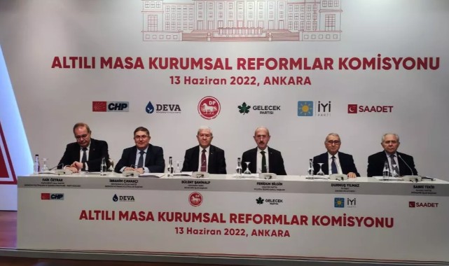 6 muhalefet partisinin bir araya geldiği 'Altılı Masa' kapsamında oluşturulan 'Kurumsal Reformlar Komisyonu' yaptıkları çalışmaları kamuoyuna açıkladı. Komisyon raporunda, kamu maliyesindeki durum ve geleceğe yönelik yükümlülüklerin yanı sıra Stratejik Planlama Teşkilatı kurulması, TCMB'nin kurumsal yapısının güçlendirilmesi başlıkları yer aldı.