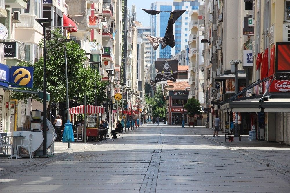 Liseye Geçiş Sistemi (LGS) sınavı nedeniyle uygulanan sokağa çıkma kısıtlamasında, İzmir'de sokaklar sessizliğe büründü.