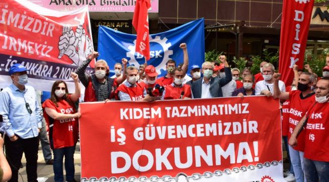Sözcü'nün haberine göre, yurdun dört bir yanından iktidara seslenen işçiler, kıdem tazminatının gündeme getirilerek işçinin huzurunun bozulduğunu, kıdem tazminatı hakkının yok edilmesine yol açacak her türlü adımın karşısında olacakları mesajını verdiler.