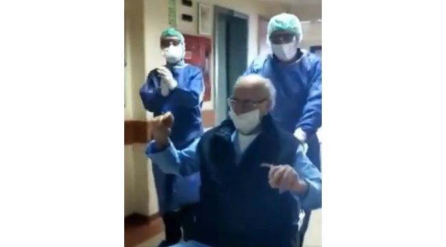 İzmir'de korona virüs tedavisi gören 95 yaşındaki adam hastalığı yenip taburcu oldu. 95 yaşındaki İsmail amca hastaneden oynayarak ayrıldı. O anları Cumhurbaşkanlığı Özel Kalem Müdürü Hasan Doğan, sosyal medya hesabından paylaştı.