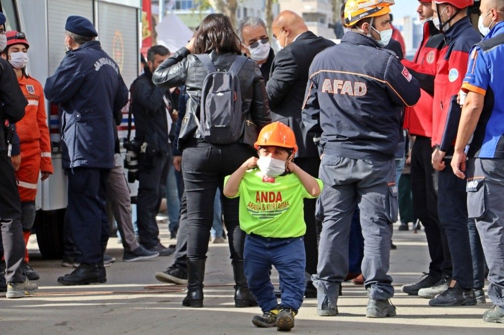 Anda Kardeşe Vefa Derneği gönüllüsü ve sosyal medya fenomeni Rıdvan Çelik (29), İzmir'deki bölgesinde 4 gündür arama kurtarma çalışmalarına katılıyor. Son olarak enkaz altında kalan kişilerin bulunduğu Rıza Bey Apartmanı'nda görev alan Çelik, kısa boyunun avantajı ile en küçük boşluklara girebileceğini, ekiplere yardımcı olabileceğini duyurdu.