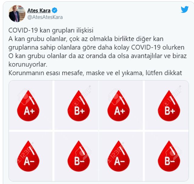 Prof. Dr. Ateş Kara, sosyal medya hesabından yeni tip koronavirüs (Kovid-19) ile kan grupları ilişkisine dair bir paylaşım yaptı.