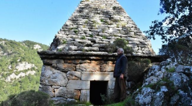 Marmaris’teki Turgut Mahallesi’nde halkın türbe zannedip, ‘Çağ Baba’ adını verdiği yapının, araştırmalar sonucunda M.Ö. 3. yüzyılda savaşçı Diagoras ve eşi Aristomakha için yapılan piramit mezar olduğu ortaya çıktı. Türkiye’deki tek piramit mezar olarak bilinen tarihi yapının defineciler tarafından talan edildiği de belirlendi.
