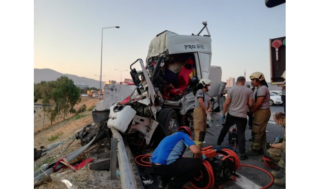 Çarpmanın etkisiyle Halil A., idaresindeki tır şarampole yuvarlanırken, Veli G., idaresindeki tır ise adeta demir yığınına döndü. Kazayı gören diğer sürücülerin ihbarı üzerine adrese çok sayıda polis, 110 AKS ve ambulans sevk edildi. İhbar üzerine gelen 110 AKS ekiplerince tırlarda sıkışan 3 kişi de bulundukları yerden çıkartılarak ambulansa alındı. Yaralılardan araç sürücüleri Halil A.'nın ve Veli G.'nin durumunun ağır olduğu Osman E'nin ise hafif olduğu öğrenildi. Ege Üniversitesi Tıp Fakültesi Hastanesi'ne kaldırılan yaralılar tedavi altına alındı.