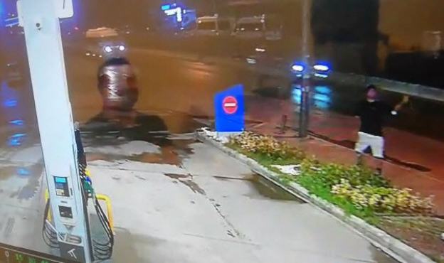 Olay anı ise akaryakıt istasyonunun güvenlik kamerası tarafından saniye saniye görüntülendi. Görüntüde, şüphelinin akaryakıt istasyonunda bir süre bekledikten sonra elindeki oyuncak bombayı fırlattığı ve olay yerinden ayrıldığı görülüyor. (DHA)