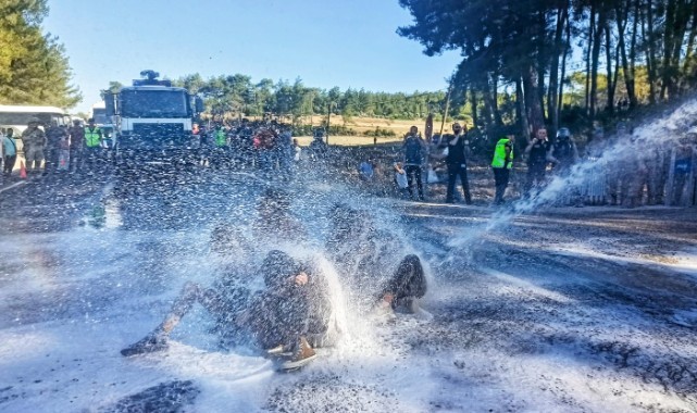 Akbelen’de maden sahasının genişletilmesi için altı gün önce sabah saatlerinde başlayan ağaç kesimi devam ediyor. Pek çok ilden Akbelen’e gelmek isteyen sivil toplum kuruluşu üyelerinin direniş alanına girmesine izin verilmiyor. Jandarma tazyikli suyla çevrecilere müdahale etti.Milas’a bağlı İkizköy’de bulunan Akbelen Ormanı’nda Limak Holding ve IC Holding ortak iştiraki YK Enerji’nin kömür maden sahasını genişletmek için ağaç kesimine karşı bölge halkının mücadelesi sürüyor. Bugün Akbelen’de köylülere destek vereceğini duyuran pek çok çevreci sivil toplum kuruluşu üyesi, direniş alanına alınmadı. Jandarma, bölgeye giden yolların girişlerini barikatlarla kapattı. Farklı illerden gelen çevreciler, yolları kapatarak; yasağı protesto etti. Jandarma müdahalesinde çevreciler gözaltına alındı. Jandarma tazyikli suyla müdahale etti.(Anka)