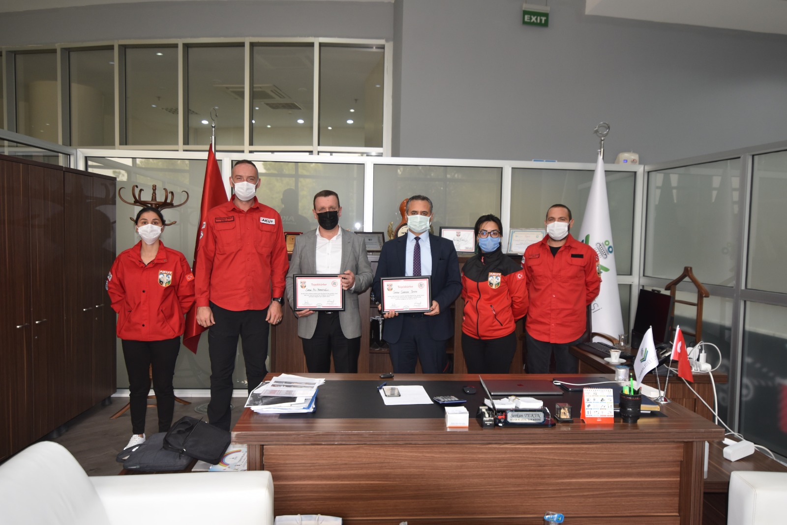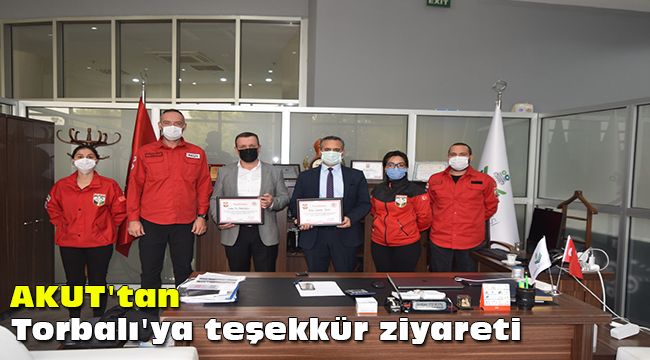 2013 yılında AKUT’a eğitim ve tatbikat çalışmaları yapabilmeleri için Pancar’da, belediyeye ait olan 400 metrekarelik bir merkezi üs olarak tahsis eden Torbalı Belediyesi, İzmir depreminde de AKUT’a teçhizat, istihkam malzemeleri, yakıt, ulaşım ve kişisel ihtiyaçlarını gidermeleri ve konaklamaları için otel temin etmişti. Torbalı Belediyesi’nin desteğini deprem boyunca omuzlarında hissettiklerini ifade eden akut İzmir Ekip Lideri Ramazan Ergut, Torbalı Belediye Başkan Yardımcısı Ali Yakupoğlu ve Kültür Sosyal İşler Müdürü Serkan Tekin’e ‘Teşekkür Belgeleri’ takdim etti.Ergut ayrıca, Torbalı Belediye Başkanı İsmail Uygur için de hazırlattıkları belgeyi, Tekin’e takdim etti.