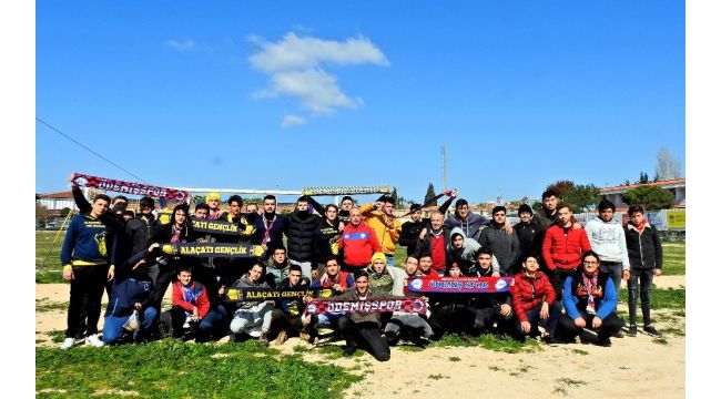 Maç başlamadan önce Alaçatıspor'un taraftarlarıyla Ödemişspor'un taraftarlarının birlikte fotoğraf çektirmeleri ve birbirlerine kulüplerinin adı yazılı olan atkılarını hediye etmeleri takdirle karşılandı.