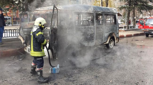 Alev alan dolmuştan yolcular son anda kurtuldu