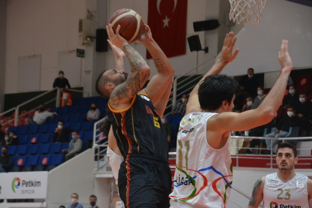 ING Basketbol Süper Ligi'nin 6. haftasında Aliağa Petkim Spor, evinde konuk ettiği Galatasaray'ı 83-64 mağlup etti. Karşılaşma öncesi her iki takım basketbolcuları 'Yaşadığımız deprem nedeniyle İzmir'e geçmiş olsun' yazılı pankartla sahaya çıktı.