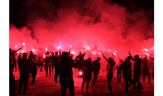 Altay taraftarı, kulüplerinin kuruluşunun 108. yılını meşale şovu yaparak kutladı.