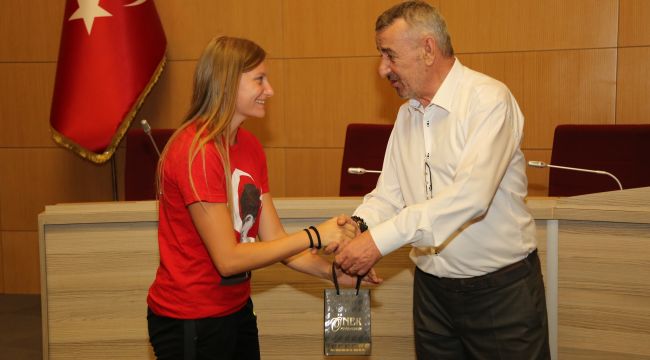 Turkcell Süper Lige yükselen Kadın Atletizm Takımı ile bir araya gelen Gaziemir Belediye Başkanı Halil İbrahim Şenol, sporcuları ve antrenörleri yarım altınla ödüllendirdi. Başarılarıyla kentin gurur kaynağı olan sporcuları tebrik eden Başkan Halil İbrahim Şenol, “Turkcell Süper Lig’e yükselen kadın atletizm takımımızı yürekten kutluyorum. Başarınızla göğsümüzü kabarttınız, gurur kaynağımız oldunuz. Her zaman siz sporcularımızın yanındayım. Her türlü desteği vermeye hazırım. Sizlerin Turkcell Süper Lig’de de başarılar elde edeceğine yürekten inanıyorum. Bu yolda sonuna kadar yanınızdayım” diye konuştu.