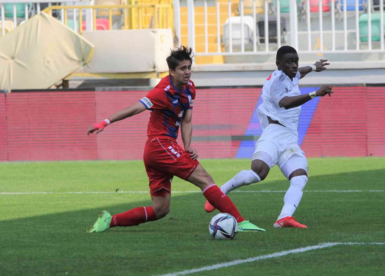 70. dakikada kaleye cepheden gören bir noktadan serbest vuruşu kullanan Altınordu'da Şeref Özcan'ın yaklaşık 30 metreden kaleye gönderdiği topu kaleci Burak Öğür uzanarak kornere gönderdi.