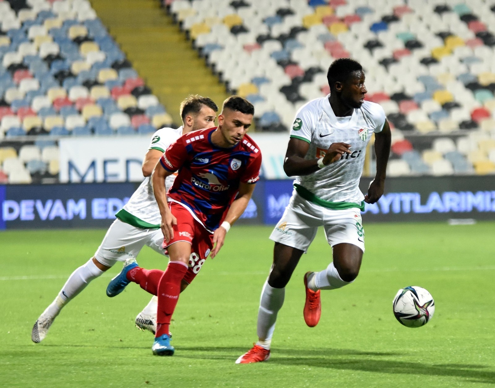 69. dakikada sol kanattan yüklenen Bursaspor'da Ofosu, Emirhan Aydoğan'a pası verdi, Emirhan'ın yerden çevirdiği topta kaleci Ali Emre Yanar topu parmaklarının ucuyla çeldi.