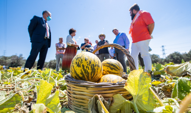 İzmir Büyükşehir Belediyesi, yöreye has Çeşme kavunu için Türk Patent ve Marka Kurumu’ndan coğrafi işaret belgesini aldı. İzmir Büyükşehir Belediyesi’nin ilk tescilli ürünü olan Çeşme kavunuyla üreticiler yeniden heyecanlı günlere döndü. İzmir Köy Koop Birliği Başkanı Neptün Soyer, Çeşme Belediye Başkanı Ekrem Onan ve İzmir Büyükşehir Belediyesi Genel Sekreter Yardımcısı Ertuğrul Tugay da Çeşmeli kavun üreticilerini hasat yerlerinde ziyaret etti. Lezzeti ve dayanıklılığıyla öne çıkan çeşme kavunu, üreticiye pazarlama konusunda büyük avantajlar sağlarken coğrafi işaret sayesinde de iç ve dış pazarlarda ürünlerini daha çok tanıtabilme imkanı sunacak.
