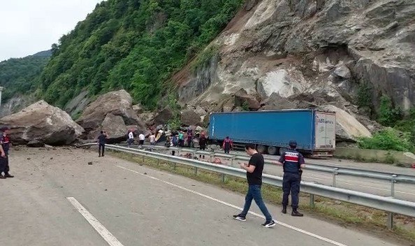 Edinilen bilgiye göre, Hopa-Kemalpaşa arası Karadeniz Sahil Yolu üzerinde sabah saat 08.10 sıralarında heyelan meydana geldi.Yol kenarında park halinde bulunan TIR'ların üzerine gelen heyelan sonucu ilk belirlemelere göre 3 tır kayalardan zarar görürken, TIR'larda bulunan 1 kişi öldü, 2 kişi de yaralandı.Olay yerine UMKE, AFAD, Jandarma ekipleri kısa sürede ulaşırken, bir kiyinin cansız bedeni ekipler tarafından kayaların arasından çıkartıldı. Yaralı 2 kişi ise çevre hastanelere gönderildi.Öte yandan heyelan anı güvenlik kameralarına saniye saniye yansıdı.GERÇEK GÜNDEM
