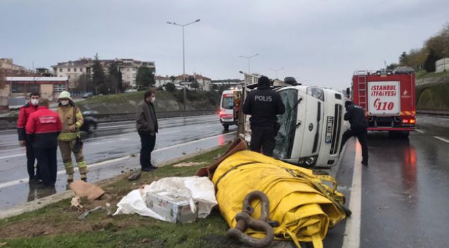 Kaza, Maltepe D-100 karayolu Küçükyalı mevkiinde sabah saat 08.30 sıralarında meydana geldi. İddiaya göre, sokağa çıkma kısıtlamasında aşırı hızla seyreden 34 BVM 144 plakalı kamyonet, yağış nedeniyle kayganlaşan yolda sürücünün direksiyon hakimiyetini kaybetmesi ile devrildi. Yolun sağ tarafında yan yatan kamyonette bulunan malzemeler yollara saçılırken, şoför sürücü koltuğunda sıkıştı. Kamyonet şoförü Mehmet A. kendi çabalarıyla sıkıştığı yerden kurtulurken, yanında bulunan Ali E. de yaralandı. Olay yerine sağlık ve polis ekibi sevk edildi. Kazada yaralanan 2 şahıs ambulansta yapılan ilk müdahalenin ardından hastaneye kaldırıldı.