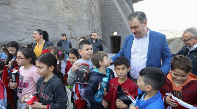 Bucalı öğrenciler şanlı tarihlerini Atatürk Eğitim Atölyesi’nde öğreniyor. Buca Belediyesi’nin Türkiye’nin en büyük, dünyanınsa 10. büyük Atatürk Maskının hemen altında hizmete açtığı; içerisinde kütüphane, sergi ve eğitim bölümlerinin yer aldığı Atatürk Eğitim Atölyesi’ni ziyaret eden ilk öğrenci grubu duygu dolu anlar yaşadı.