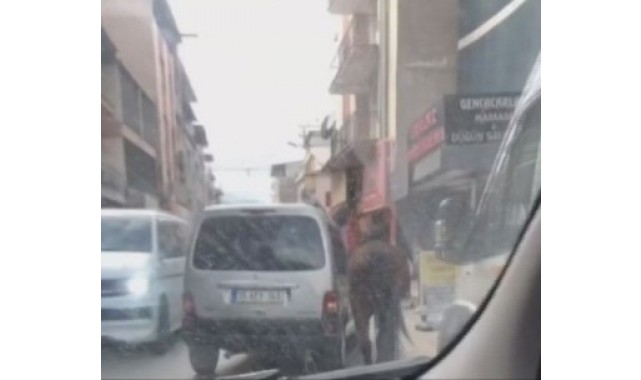 Olay, dün, Gazeteci İsmail Sivri Bulvarı'nda meydana geldi. 35 ACY 346 plakalı Peugeot marka hafif ticari araca bir atın iple bağlanarak yürütüldüğünü gören vatandaşlar gözlerine inanamadı. O anlar bir başka araç sürücüsü tarafından cep telefonu ile kayda alınarak, sosyal medyada paylaşıldı. Görüntüyü izleyen hayvanseverlerin şikayeti üzerine İlçe Emniyet Müdürlüğü ekipleri tarafından çalışma başlatıldı. Yapılan çalışmalar sonucunda atı araca bağlayarak yürüten kişinin sürücü E.Ş olduğunu belirleyen ekipler, şahsı gözaltına aldı.