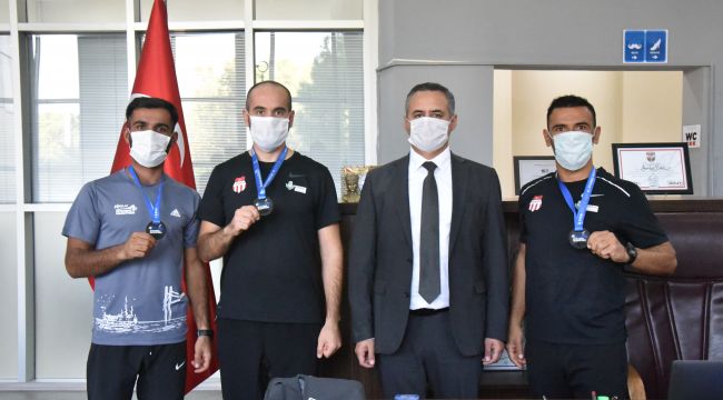 Daha önce Torbalı’nın göğsünü çeşitli organizasyonlarda temsil edip, gururlandıran Tuncay Saraç, Mehmet Çiçek ve Özay Atasoy, dünyanın en önemli organizasyonlarından biri olan avrasya Maratonu’nda ilk 100’e girerek ilçeyi bir kez daha gururlandırdı. Aldıkları madalyalarla torbalı Belediyesi Belediye başkan Yardımcısı Kültür ve Sosyal İşler Müdürü Serkan Tekin’i ziyaret eden sporcular, kendilerine destek olan Torbalı Belediyesi’ne teşekkür etti.