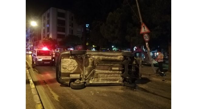 İzmir'in Buca ilçesinde sürücüsünün yoldaki emniyet şeridini son anda fark ettiği otomobil kontrolden çıkarak aydınlatma direğine çarptı. Takla atan araçtaki 1 kişi yaralandı.
