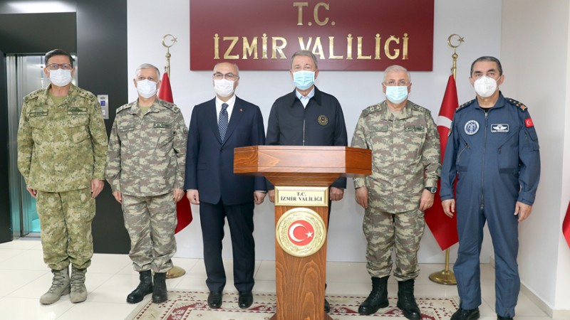 Akar, beraberindeki Genelkurmay Başkanı Orgeneral Yaşar Güler, Kara Kuvvetleri Komutanı Orgeneral Ümit Dündar, Deniz Kuvvetleri Komutanı Oramiral Adnan Özbal ve Hava Kuvvetleri Komutanı Orgeneral Hasan Küçükakyüz ile İzmir'deki birliklerde gerçekleştirdiği inceleme ve denetlemelerine devam ediyor.