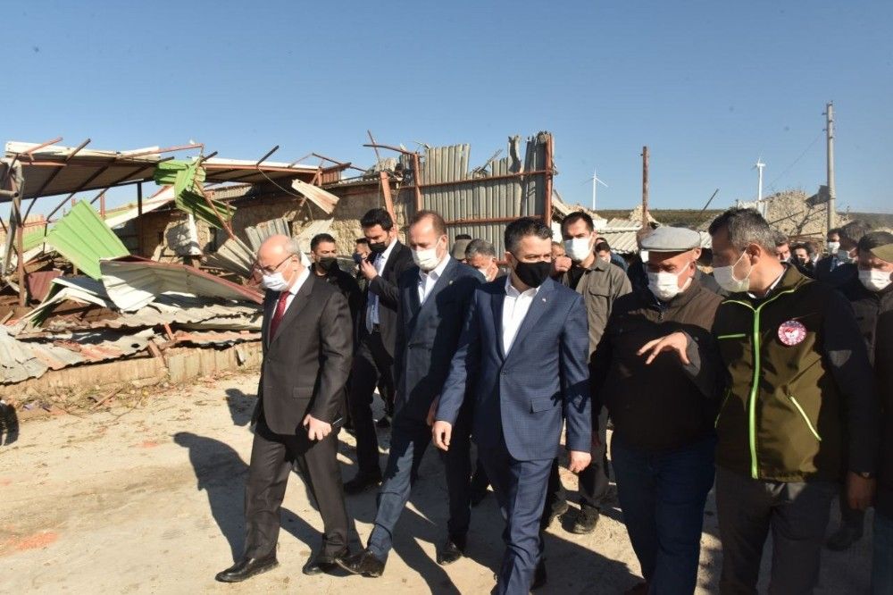 Urla ilçesindeki seraların durumu hakkında da bilgi veren Bakan Pakdemirli, "Kuşçular köyünde incelemelerde bulunduk. 700 dönümlük sera alanının etkilendiğini gördük. Ancak bu sera alanlarındaki etkilenme, ağırlıklı olarak seraların naylonlarıyla sınırlı kalmış. Maalesef sadece 6 kişi TARSİM sigortalı. Elbette can kaybı olmaması önemli ama malı da kaybetmemek için mutlaka sigorta yapmamız, tedbirli olmamız lazım. Bir o kadar da meteoroloji önemli. Kuşçular'daki köylerimizdeki çiftçilerimizde madem bu kadar az sayıda TARSİM sigortalı var, biz bundan sonrası için onlara TARSİM sigortası hediye ediyor olacağız. Hasar gören sera naylonları ile ilgili gerek Tarım Kredi Kooperatiflerinden, gerek bakanlığımızın kaynaklarından gerekli yardımları yapma konusuna gideceğiz. Hasar gören tohum, fide ihtiyaçlarını da karşılıyor olacağız" ifadelerini kullandı.