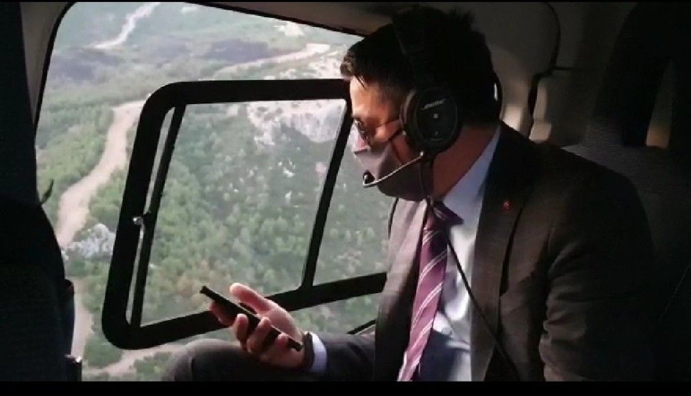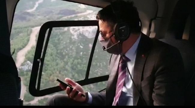 Tarım ve Orman Bakanı Bekir Pakdemirli, Menderes'te çıkan yangını havdan inceledi. Telsizle bölgede çalışma yapan personele seslenen Pakdemirli, "Hepinize çok teşekkür ediyorum. Allah yar ve yardımcınız olsun" dedi.