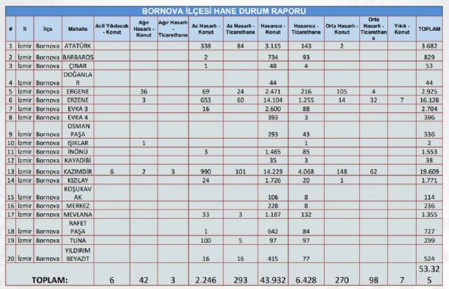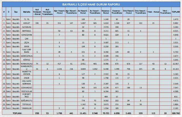 Gündem 05 Kasım 2020 - 10:52 Bakanlıktan İzmir'in hasar tespit raporu! İzmir'deki 6,6 büyüklüğündeki depremin ardından Çevre ve Şehircilik Bakanlığı ayrıntılı bir rapor yayınladı. Gündem 05 Kasım 2020 - 10:52 Yorumlar TAKİP ET Dinle Yazdır A Büyüt A Küçült Yorumlar Depremin en çok etkilediği bölgelerle ilgili acil yıkılacak ve hasarlı binalar tespit edildi. # izmir# deprem# bakanlık# şehir# hasar# tespit# rapor YORUMLAR adlı kullanıcıya cevap x Gönder İlginizi Çekebilir İZBETON soruşturmasında villa detayı! Şikayet dilekçesi ortaya çıktı Bornova Belediye Başkanı Eşki'nin serbest bırakılmasına savcılıktan itiraz Başkan Eşki'nin ifadesi ortaya çıktı! Mahkemeden Meslek Fabrikası için kritik karar: Delil tespiti kısmen kabul edildi, Cemil Tugay fabrikaya girdi Son Haberler Başkan Tugay’dan kentsel dönüşüm açıklaması “İzmir dezenformasyon... İran Hürmüz Boğazı'nı Açtı Folkart Academy, İkinci Dönem Mezunlarını Verdi Gaziemir’den okul saldırılarına tepki Gaziemir’den okul saldırılarına tepki Bayraklı'nın doktorları depremzedelerin yanında Bayraklı'nın doktorları depremzedelerin yanında