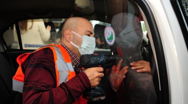 İzmir Balçova Belediyesi, son günlerde tekrar artış gösteren koronavirüs vakalarının önüne geçmek için ilçedeki ticari taksilerin içine şeffaf panel uygulaması başlattı. Belediye tarafından alınan paneller, Balçova’daki 115 ticari taksinin tamamına ücretsiz monte edildi. Şoför ile yolcu arasında bulunan bölüme monte edilen plastik şeffaf panelde bilgilendirici uyarılar ile para verme bölümü ve görme engelli vatandaşların okuyabilecği Braille Alfabesi ile taksinin plakası yazılı bulunuyor. Ayrıca araçların ön camlarında “Bu taksi koronavirüse karşı korunaklıdır” şeklinde uyarıcı bulunuyor.