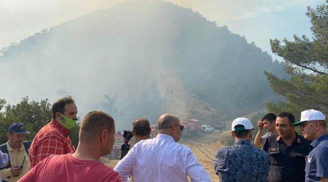 11-12 futbol sahası büyüklüğündeki bir alanı etkileyen yangını söndürme çalışmalarına İzmir Büyükşehir Belediyesi İtfaiye Daire Başkanlığı’na bağlı 54 itfaiye personeli, 15 arazöz ve 50 tanker katılıyor.