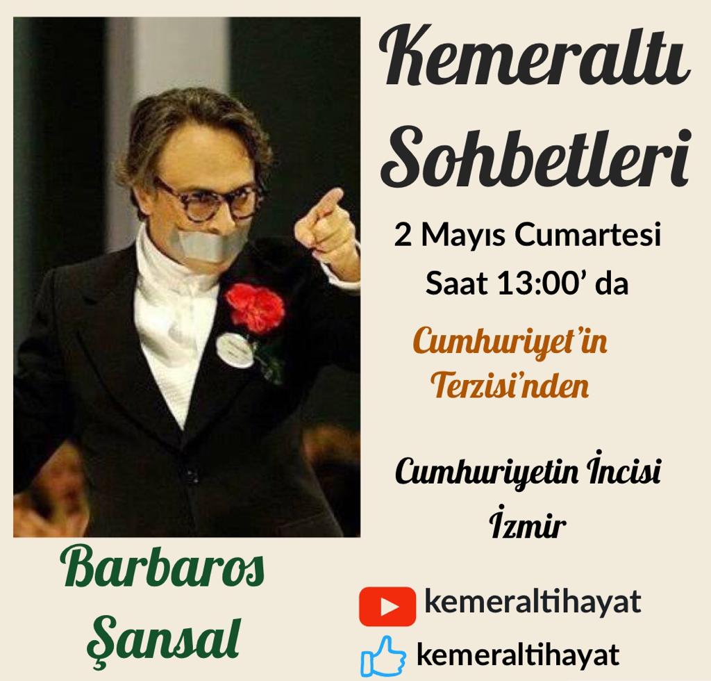 Her hafta ünlü bir ismin konuk olduğu Kemeraltı Sohbetleri bugün Barbaros Şansal’ı konuk ediyor. İzmir’in anılarındaki yeri, eski fuar dönemleri, moda da İzmir ve Kemeraltı Çarşısı’nın önemi ve tüm bilinmeyenlerinin konuşulacağı barbaros Şansal canlı sohbeti Kemeraltı Hayat Platformu’nun sosyal medya hesaplarından canlı olarak izlenebilecek.