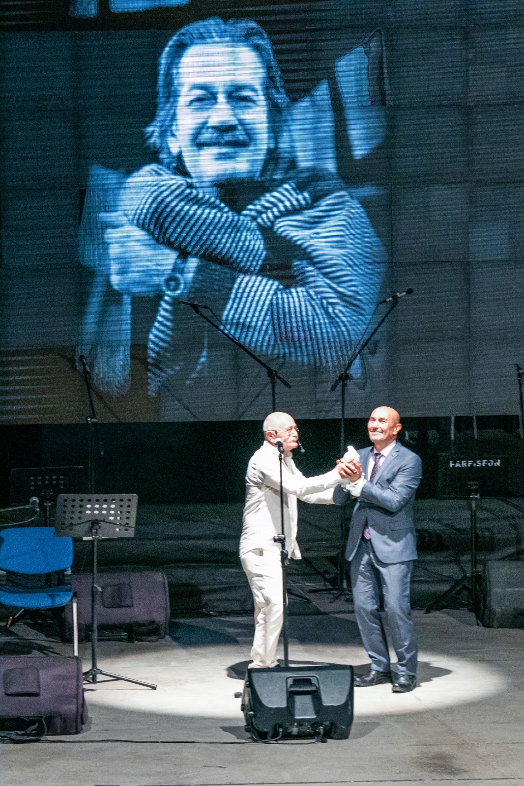 Başkan Soyer, konuşmasının ardından barışı simgeleyen beyaz güvercin uçurdu. Daha sonra Ataol Behramoğlu, Cezmi Baskın, Levent Ülgen, İ. Hakkı Demircioğlu, Metin Coşkun, Gülcan Altan, Ufuk Karakoç, Gülay Ilgın R. Su, Muhlis Asan, Erdem Oral ve Ahura Ritm Topluluğu'nun yer aldığı Ruhi Su Dostlar Korosu, sahne alarak, sevilen eserlerini seslendirdi.