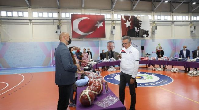 Etkinliğin sonunda Başkan Arda, Gaziemir Ahmet Taner Kışlalı Spor Salonu’nda amatör kulüplerin yöneticilerine malzemeleri teslim etti.