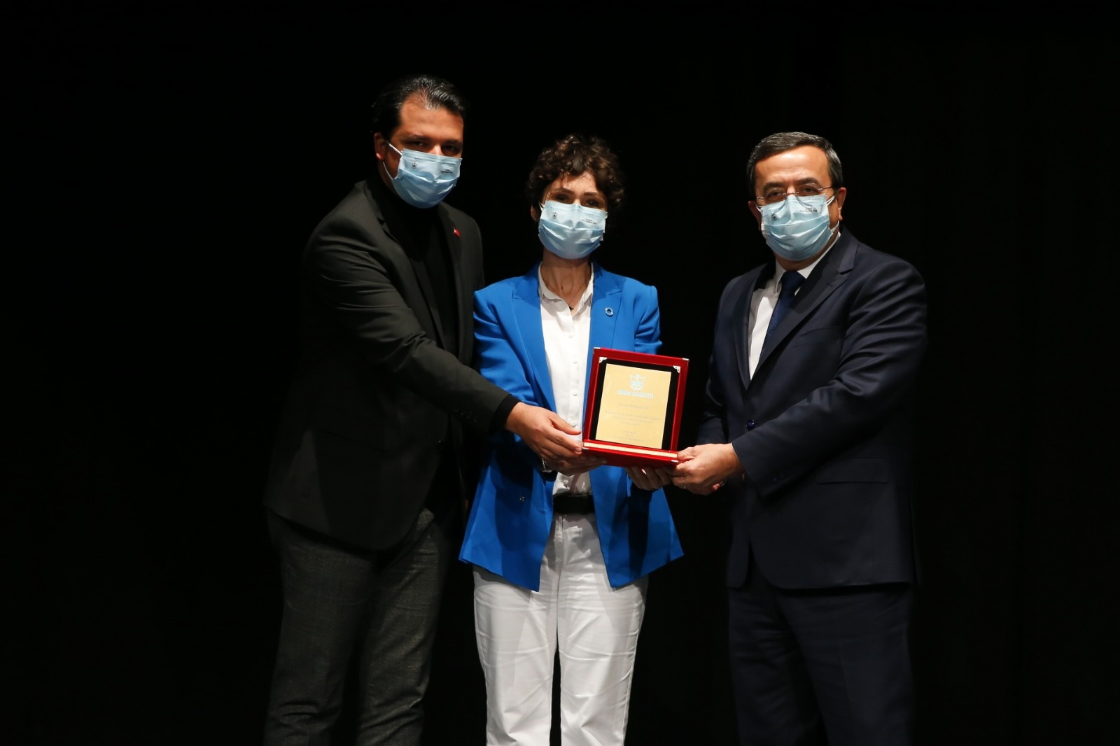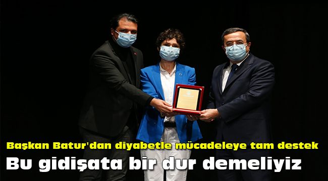Etkinliğin sonunda Başkan Abdül Batur’a, hastalıkla mücadeleye verdiği destekten ötürü Ege Diyabetliler Derneği’nin rozeti takıldı.