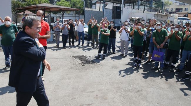 Konak Belediye Başkanı Abdül Batur, konak Belediyesi Temizlik İşleri Müdürlüğünde çalışanlarla bir araya geldi. Batur, belediyede KHK’lı olarak çalışan 745 işçinin haklarının verilerek, belediye şirketine geçiş sürecinin tamamlanacağını açıkladı. Aile, Çalışma ve Sosyal Hizmetler Bakanlığı’ndan bir süredir sürece dair yazı beklendiğini anımsatan Batur, “Bakanlıktan yazı gelir ya da gelmez, sorumluluğu üzerime alıyorum” diyerek, KHK’lı çalışanların haklarının verileceğini müjdeledi. Batur, “Benim de sizden bir isteğim var: Çok daha fazla çalışacağız, çok daha fazla üreteceğiz. Konak’a, Konak Belediyesine söz gelmeyecek şekilde hizmet üreteceğiz. Ben de bu konuda size güveniyorum. Bundan sonra da aynı dayanışma ruhuyla çalışacağız ve Konak’ı en güzel yere getireceğiz. Hepinize, ailelerinize, belediyemize hayırlı uğurlu olsun” diye konuştu.