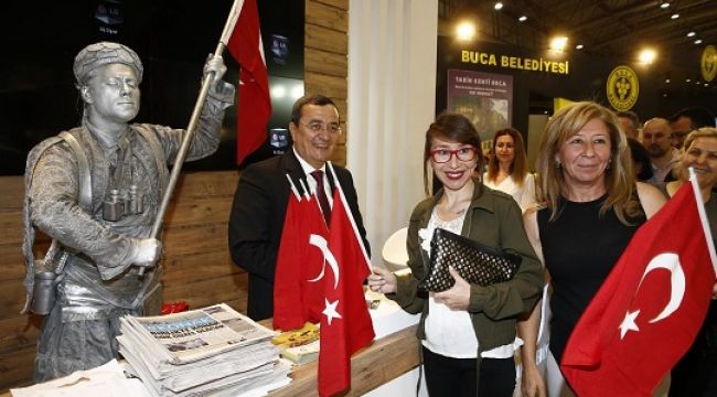Yoğun ilgi gören etkinlik sırasında Başkan Batur’a, 9 Eylül temalı canlı heykel performanslarını gerçekleştiren sanatçılar da eşlik etti. Bu gösteriler sadece 9 Eylül’le ve fuar ana standıyla sınırlı değil.Kültürpark’ta kurulan Kemeraltı Sokağı’nda kadınların semt merkezlerinde yaptıkları el emeği ürünleri sergileyen Konak Belediyesi, bu yıl sanatçıların canlı heykel performanslarına da yer vererek, kadın ve çocuk haklarına, özgürlüğe, doğaya dikkat çekip farkındalık yaratmaya çalışıyor.Gösteri sanatçıları saat 18.00’den 21.00’e kadar Kemeraltı Sokağı’nda performanslarını sergiliyor.