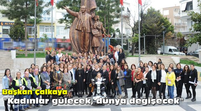Belediyede görevli kadın personelle de bir araya gelen Başkan Çalkaya, "Biz 8 Mart Dünya Kadınlar Günü nedeniyle çok farklı etkinlikler hazırlamıştık. Ancak Suriye'de yaşanan gelişmeler ve şehitlerimizin olması nedeniyle iptal ettik. Etkinliğimiz iptal oldu ama verdiğimiz kadın mücadelesi her zaman devam edecek. Ulu önderimiz Mustafa Kemal Atatürk'ün verdiği haklar başta olmak üzere hiçbir hakkımızdan vazgeçmeyeceğiz. Balçova Belediyesi'nin kadın personeli, halka hizmeti ön planda tutan, kadın hakları ve insan haklarına saygılı, ayrımcılığa karşı mücadele eden kadınlar olmuştur. Balçovalı kadınlar da haklarının bilincinde; ekonomik, sosyal ve siyasal alanda mücadele ederek kendilerini ispatlamış kadınlardır" diye konuştu.