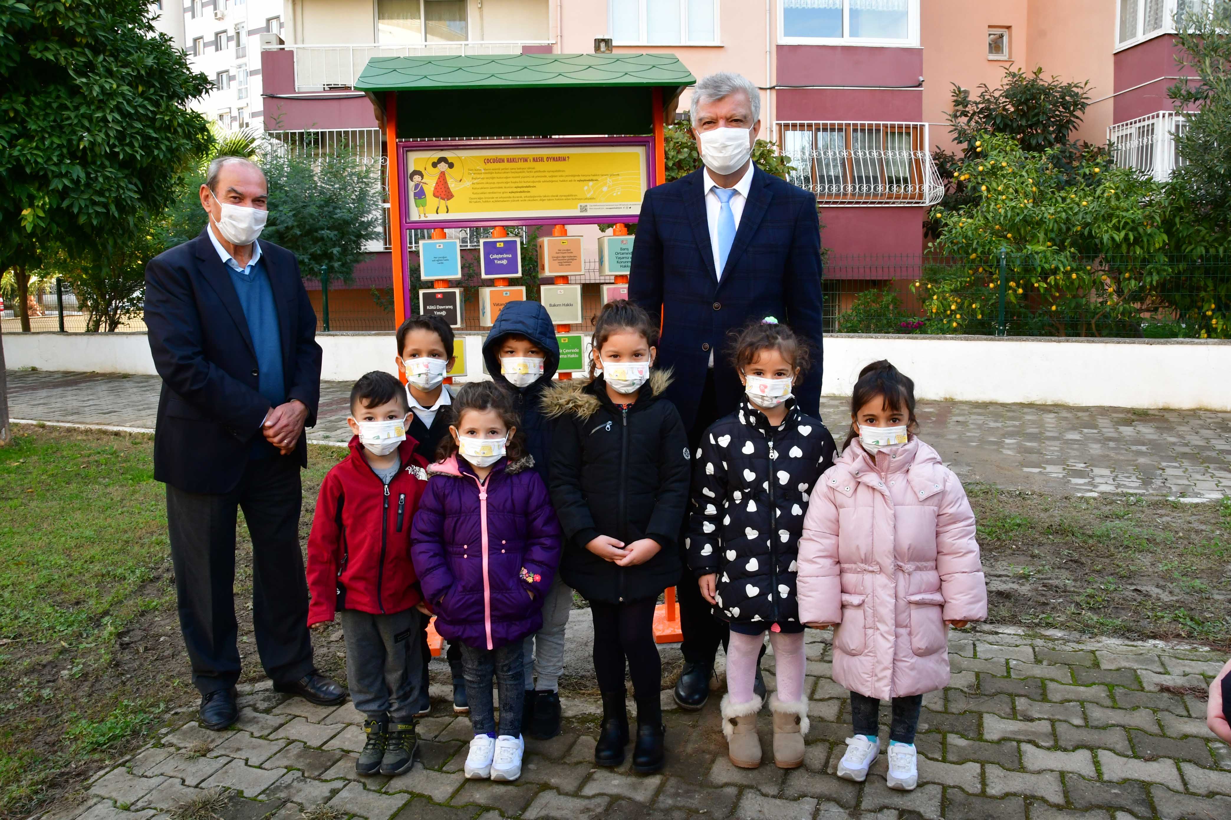 “Çocuğum, Haklıyım” oyuncağı, Dr. Aslıhan Öztezel tarafından tasarlanıp geliştirildi. Çocuk Hakları Sözleşmesi’nde güvence altına alınmış hakları interaktif bir oyun ile 7’den 70’e her kesime öğretmeyi amaçlayan oyuncak, Birleşmiş Milletler’in etik değerleri çocuklara öğreten çizgi film karakterleriyle sembolize edildi. Tamamen ekolojik ahşaptan üretilen Çocuğum Haklıyım oyuncağının ilki, Narlı Mahallesi’ndeki Cevat Şakir Kabaağaçlı Parkı’na yerleştirildi. Hem çocukların hem de velilerin beğenisini kazandı. Törene, Başkan Ali Engin’in yanı sıra, meclis üyeleri, muhtarlar ve Nar Çiçekleri Anaokulu öğrencileri de katıldı.