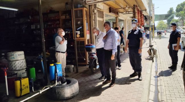 “Kontrollü sosyal hayat dönemi” denetimleri ile ilgili İçişleri Bakanlığı’nın 81 ile gönderdiği genelge kapsamında Ödemiş’te de Koronavirüs tedbirleri denetlendi. Ödemiş Kaymakamı Fatih Aksoy ve Ödemiş Belediye Başkanı Mehmet Eriş, ilgili birim amirleriyle birlikte kent merkezindeki esnafları ziyaret edip maske, sosyal mesafe ve hijyen kurallarıyla ilgili hatırlatma ve uyarılarda bulundu.