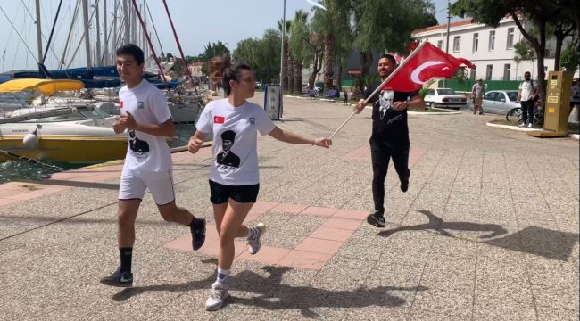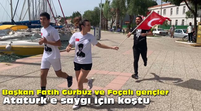 Foça Cumhuriyet Meydanı’ndaki Atatürk Anıtı’nda başlayan 19 Mayıs Gençlik Koşusunda Belediye Başkanı Fatih Gürbüz, elinde taşıdığı Türk bayrağını gençlere verdi. Şanlı bayrağımız, Yeni Foça meydanındaki Atatürk Anıtı’na ve Yeni Foça Fula Dağı’na koşarak ulaşan gençlerin ellerinde dalgalandı.