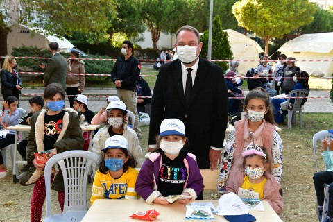 Çok özel bir 10 Kasım yaşadıklarını ifade eden Başkan Gümrükçü, “İlk olarak çocuklarımızın resimlerinin sergilendiği Belediyemizin Dayanışma çadırını gezdik.