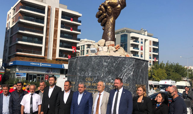 Çiğli Kaymakamı Adnan Çakıroğlu ise, “Geçen sene bugün 83 milyonun yüreğini sızlatan bir olayla karşı karşıya aldık. Yaşanan depremde 117 vatandaşımız hayatını kaybetmiş, birçok vatandaşımız yaralanmıştı. Ben onlara şehit diyorum. Şehitlerimize Allah’tan rahmet iliyorum. Ben 45 gün oldu bu ilçeye geleli. Türkiye’de bir deprem bekleniyor ama bu konuda hazırlıklı mıyız değil miyiz; şüphelerimiz ve sıkıntılarımız var. bina stoklarımız kötü. Bu konuda sorumluluk sadece devlette veya belediyede değil; sorumluluk hepimizde. Sorgulamamız lazım. Kadere kısmete bırakmamız, tedbirimizi almamız lazım. Burada hepimiz birlikte ne gün başlarsak en tez zamanda başlamamız gerekiyor. Bina stoklarını en kısa süre yenilememiz, depreme dayanıklı yapmamız lazım. Deprem değil, bina öldürüyor. Hepimize bu konuda sorumluluk düşüyor. Türkiye bir deprem ülkesi, herkes bu konuda duyarlı olacak. Bu anıtta hem ilçemizin merkezinde seçtiği ve yaptırdığı için teşekkür ediyorum.