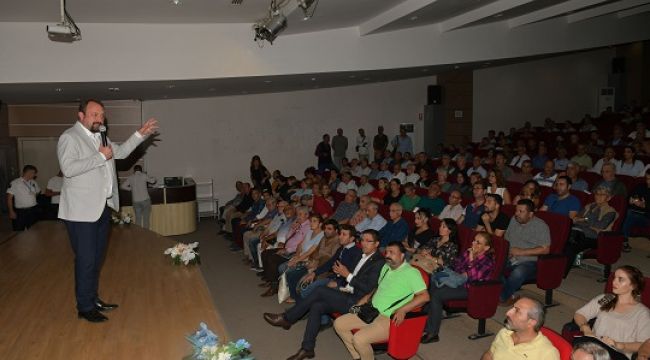 Çiğli Belediye Başkanı utku Gümrükçü Çiğli’de yaşayan vatandaşlarla belediye konferans salonunda bir araya geldi. Başkan Utku gümrükçü Çiğli Belediyesi tarafından yapılacak projeler ile İzmir Büyükşehir Belediyesi desteğiyle yürütülecek projeleri açıkladı. Başkan Gümrükçü’ye belediye başkan yardımcıları da eşlik etti.