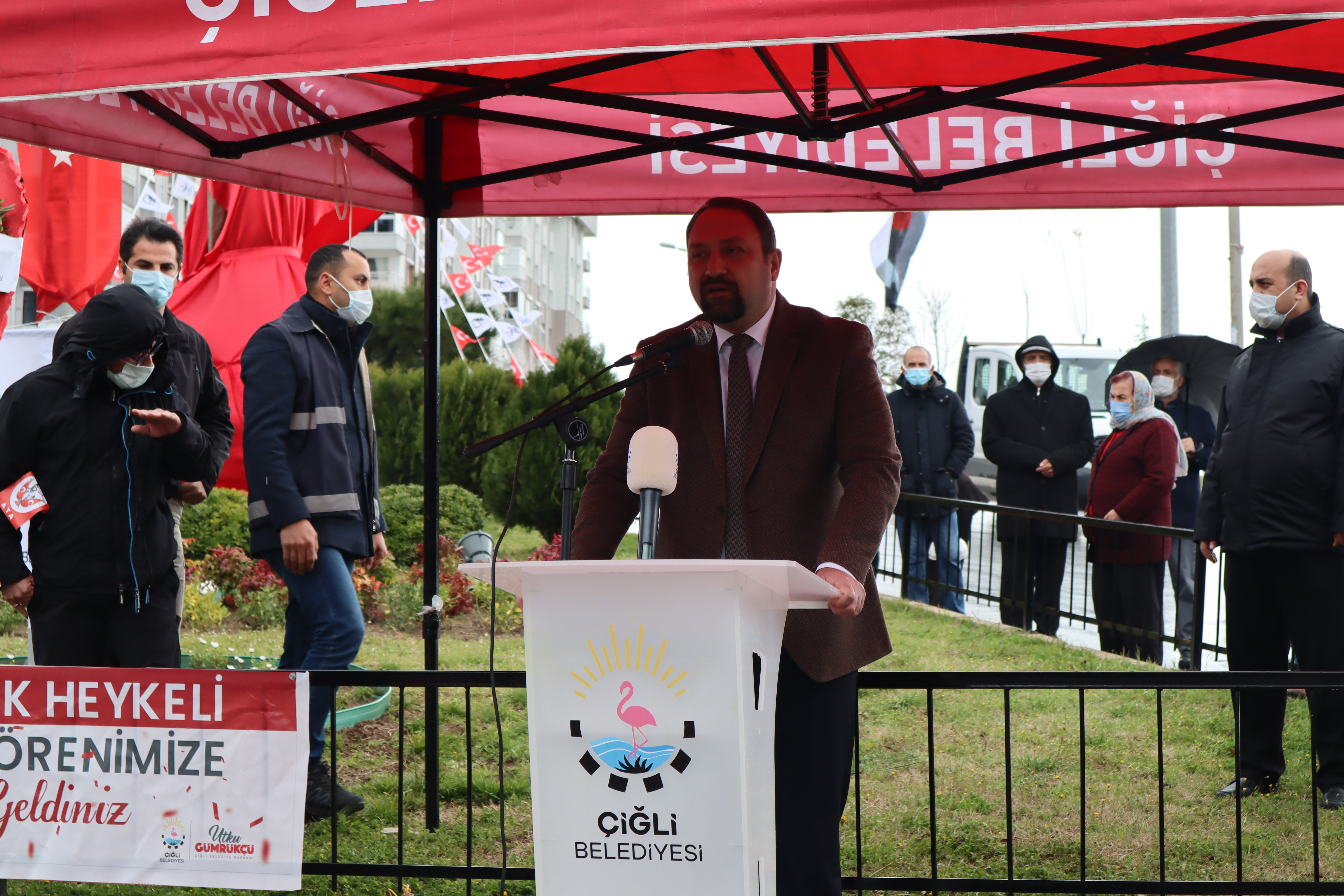 Başkan Gümrükçü ayrıca, “Bugün burada sağcı solcu yok. Bugün burada erkek kadın yok. Bugün burada genç yaşlı yok. Bugün burada esnaf odası var. Bugün burada her partiden onlarca insan var. Bu insanlar Atatürk’ün arkasında birleşmiş durumda. Sizden aldığımız güçle arkamızda Atatürk ve devrimleri olduğu sürece Çiğli’yi, İzmir’i ve Türkiye’yi çağdaş uygarlık düzeyine çıkarmak için canla başla, sizlerle yoldaşlıkla mücadeleye devam edeceğiz. İyi ki varsınız. Atatürk Mahallesi Çiğli’nin hızlı büyüyen bir mahallesi. Herkes Ataşehir, Balatçık büyüyor der. Ama bugün görülmeyen ama hem adından dolayı hem de nüfusundan dolayı büyüyen ve büyümeyi hak eden bir mahalle var. Tecrübeli bir muhtarı ve hizmet talep eden halkı var. Bu heykel burada durdukça ve bayrak dalgalandıkça bağımsızlık ateşi sönmeyecek. Atatürk'ün yaktığı bağımsızlık meşalesinin altında bir arada. Sizlerle beraber mücadeleye devam edeceğiz. Bu heykel bir sanat eseri aynı zamanda burada yaşayan halkın eseri" dedi