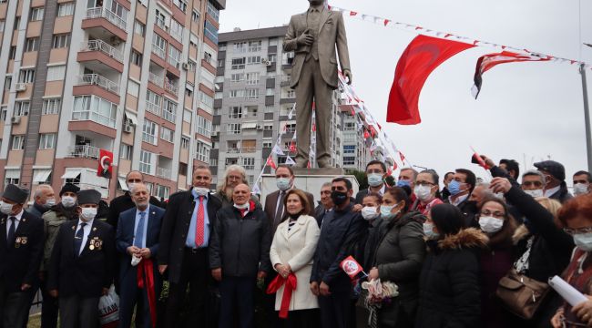 Aylin BAYRAM/İZMİR GÜNDEMİ- 18 Mart Çanakkale Zaferi’nin 106’ncı yıl dönümü anısına Atatürk Mahallesi’nde atatürk heykeli dikildi. Törene Çiğli Belediye Başkanı Utku Gümrükçü, Çiğli İlçe Başkanı Mert Özcan, STK temsilcileri ve çok sayıda vatandaş katıldı. Açılış törenininde konuşan Çiğli Belediye Başkanı Utku Gümrükçü, "Çiğli, İzmir’i en hızlı büyüyen ilçelerinden bir tanesi, çok özellikleri var. Üniversite, çeşitli hastaneler, 20 üzerinde eğitim kurumu, Türkiye’nin en eski organize sanayi bölgesi, kuş cenneti, doğal yaşam parkı, İzmir’in ilk havaalanı var. Ayrıca sizin gibi değerli insanları barındırıyor. Biz de bu ilçede hizmet kalitesini, yaşam kalitesini yükseltebilmek için, halkımızın eksiklerini tamamlayabilmek için 2 yıla yakın süredir canla başla çalışıyoruz. Bu çalışma bazen meyvesini parklarla bazen yollarla bazen sanat eserleriyle veriyor. Bugün 18 Mart… Çok önemli bir gün! Bugün insanlık tarihinde 7 düvele karşı meydan okunan, Avrupa’nın hasta adam olarak gördüğü Osmanlı’nın batışının ilan edilmeye çalışıldığı gün. Fakat Anadolu’nun tamamından her renkten inanın büyük destan yarattığı, tarihte eşi benzeri olmayan vatan savunmasının ve zaferle taçlandığı bir gün. Hem Türk hem dünya tarihinde halkların baskı ve zulme karşı bir araya gelerek nasıl direneceklerinin gösterildiği gün. O gün başta olan büyük komutan ben size ölmeyi emrediyorum diyecek kadar yürekliydi. Bu halkın insanları bağımsızlık söz konusu olduğunda canların verecek kadar fedakardır” dedi.
